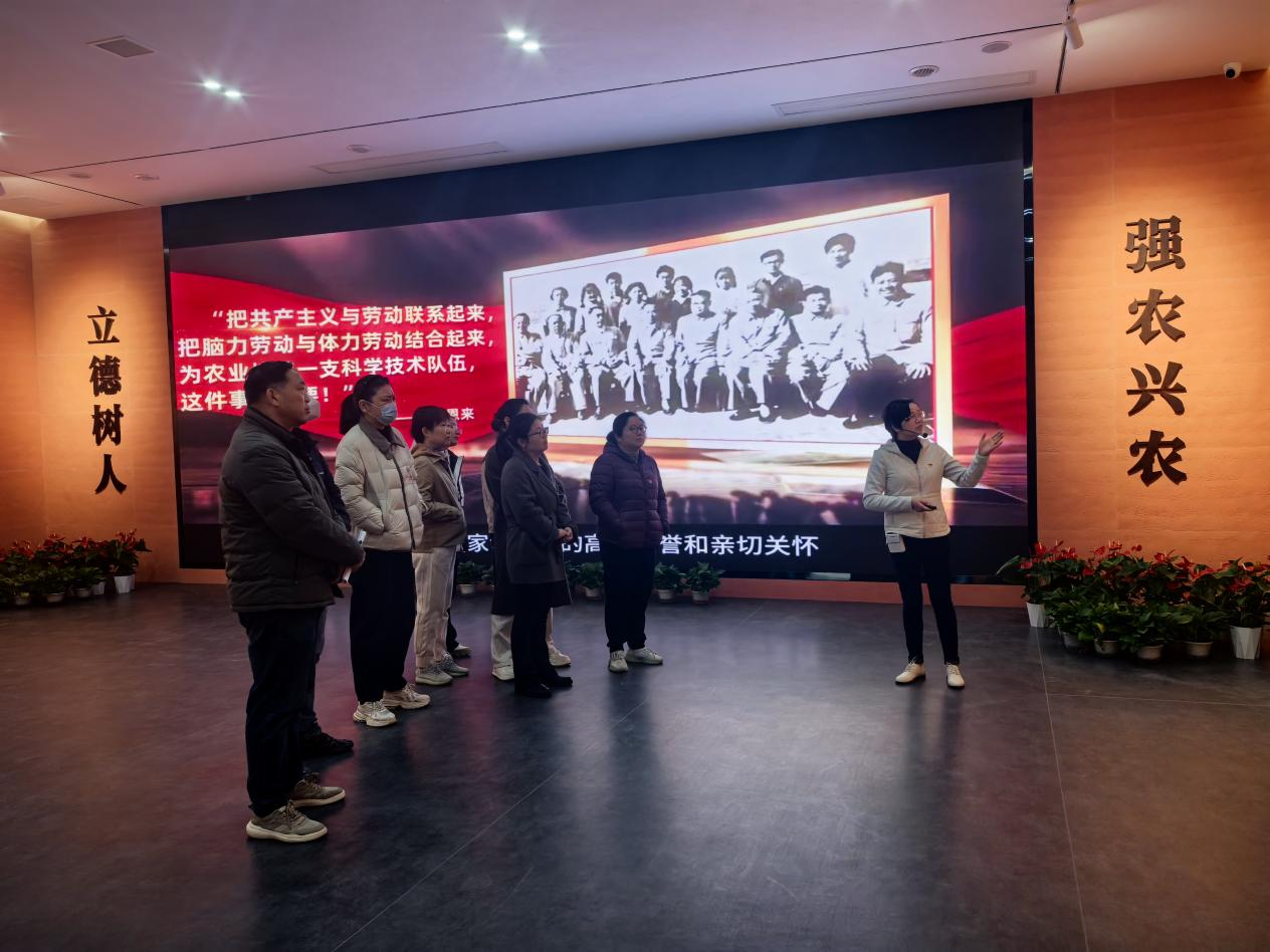 步入庄重典雅的校史馆,映入眼帘的便是校史沿革文化墙和两份特殊的回信,时光的卷轴在党员们面前徐徐展开。副书记为全体党员讲授一堂生动的校史党课。支部党员们依次参观了“黉门先声 铸庠序于实业”、“杏岭肇基 树本科之典范”、“院系调整 建强盛之农院”、“半工半读 闯教育之新路”、“梅岭新韵 奏发展之凯歌”、“江农奋进 谱时代之华章”、“璀璨星光 展群英之风采”等展区。一幅幅照片、一件件实物、一段段影像,无声地诉说着学校自1905年创办以来,与民族共命运、与时代同奋进的辉煌篇章。学校发展的每一个足迹,都深深烙印着历代师生科教兴农、服务人民的赤子情怀。